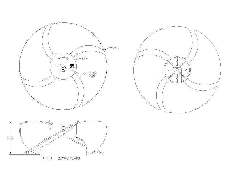 適用於冷凍冷藏櫃/展示櫃散熱器及蒸發器塑膠扇葉