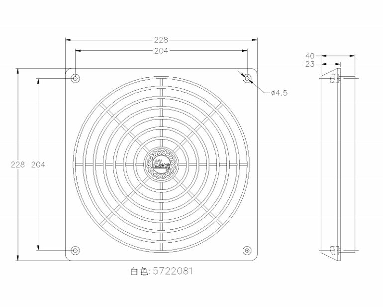 外觀尺寸:228*228*40mm